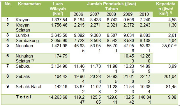 2) Kec. Nunukan Selatan pada tahun 2006 s/d 2008 masih gabung dengan Kec. Nunukan.