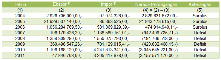 Pertanyaannya; bagaimana dengan posisi ekspor Nunukan – apabila ekspor dapat mengimbangi peningkatan impor maka dapat terjadi bahwa posisi defisit nilainya tidak sebesar dengan data yang disajikan pada Tabel 4 diatas. Angka ekspor yang ada tidak dalam jumlah yang wajar; diprediksikan bahwa angka tersebut lebih dari itu – sekali lagi; permasalahannya terletak pada ôsistem pencatatanö, disamping terkait dengan pintu keluar/masuk tidak resmi yang banyak terdapat di perbatasan laut kedua Negara – kondisi demikian merupakan mata rantai kegiatan perdagangan yang sudah berlangsung sejak lama; Penduduk Nunukan dan sekitarnya sudah biasa memasarkan hasil produksi pertanian/perikanan langsung ke Tawao, selain pertimbangan mendapatkan harga jual lebih tinggi; juga mempertimbangkan jalur pemasaran yang lebih cepat.