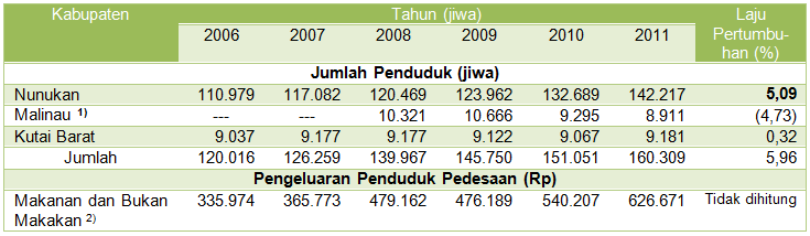 Keterangan: 1) Penduduk Kabupaten Nunukan dan Kutai Barat tahun 2011.