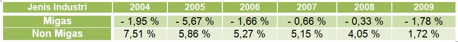 Ideal-nya, bersamaan dengan kemampuan mengelola ekonomi makro, Pemerintah secara bersamaan juga harus melakukan upaya terobasan regulasi yang mengarah pada peningkatan kompetensi dan efisiensi pelaku usaha terutama industri pengolahan, untuk mampu bersaing di pasaran regional dan internasional, dimana tumpuannya terletak pada kemampuan untuk memacu pertumbuhan Industri Pengolahan Non Migas. Pada periode waktu 2004-2009, walaupun berfluktuatif, namun perkembangannya selalu positif (searah dengan laju pertumbuhan ekonomi). Disisi lainnya, pertumbuhan Industri Pengolahan Migas mengalami pertumbuhan negatif.